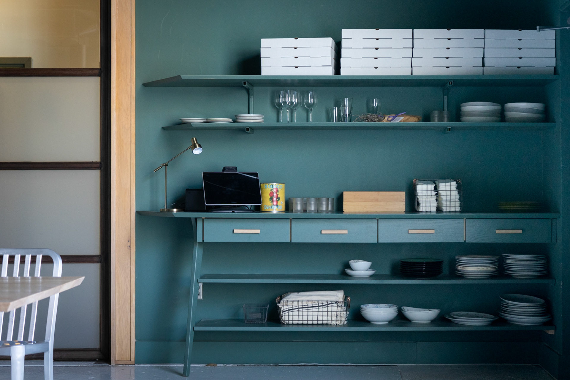 White oak farm tables, fold-down auxiliary table, matching service area with shelving. Brian and Jessica are a pleasure to work with and are working hard to lift all boats in Knoxville. A Dopo was named among the top 20 pizza restaurants in the country in 2023.